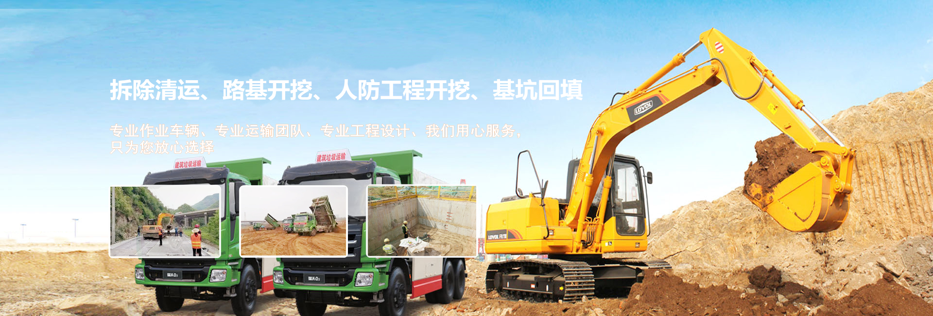 ???????公司擁有專業土石方工程作業施工團隊,承接各種拆除清運、場地平整、基坑(槽)與管溝開挖、路基開挖、人防工程開挖、地坪填土、路基填筑以及基坑回填等工程項目。專業設計施工團隊,工期短,價格優惠,保維護,歡迎您來電咨詢服務。